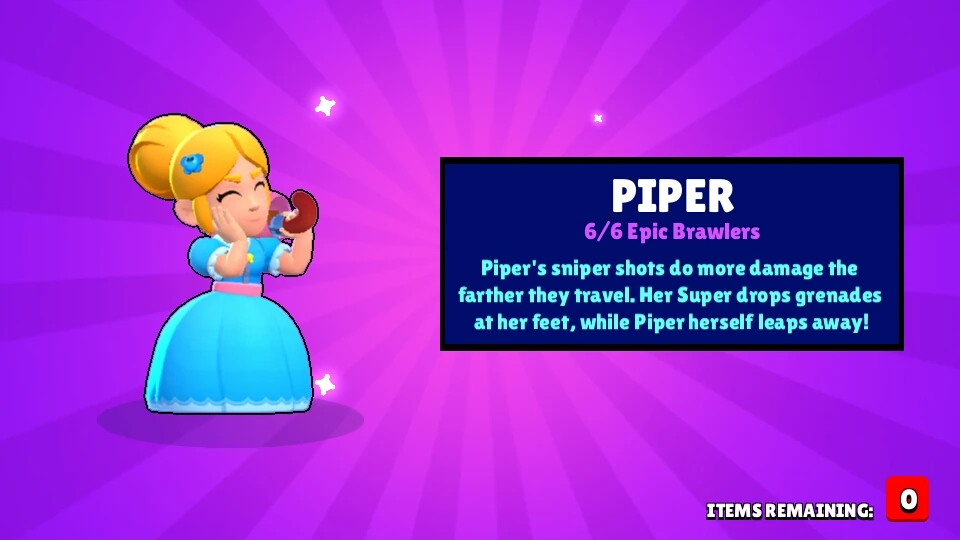 Daily meta of the best recommended global brawl stars meta. Directly from the far west, here we have piper, from the mobile game brawl stars. Learn the stats, play tips and damage values for piper from brawl stars! Her super drops grenades at her feet, while piper herself leaps away!. Her super drops grenades at her feet, while piper herself leaps away!